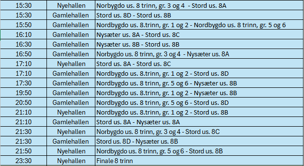 Velkomen til HAFO cup for ungdomsskuletrinna den 17.10.25! Det er gledeleg at heile 27 lag frå kommunen sine tre ungdomsskular stiller.