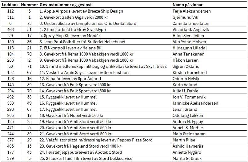 Takk til alle som har kjøpt lodd og bidratt med premiar til klubblotteriet vårt! Me har i dag trekt dei heldige vinnarane. Gratulera til dykk alle🙂
